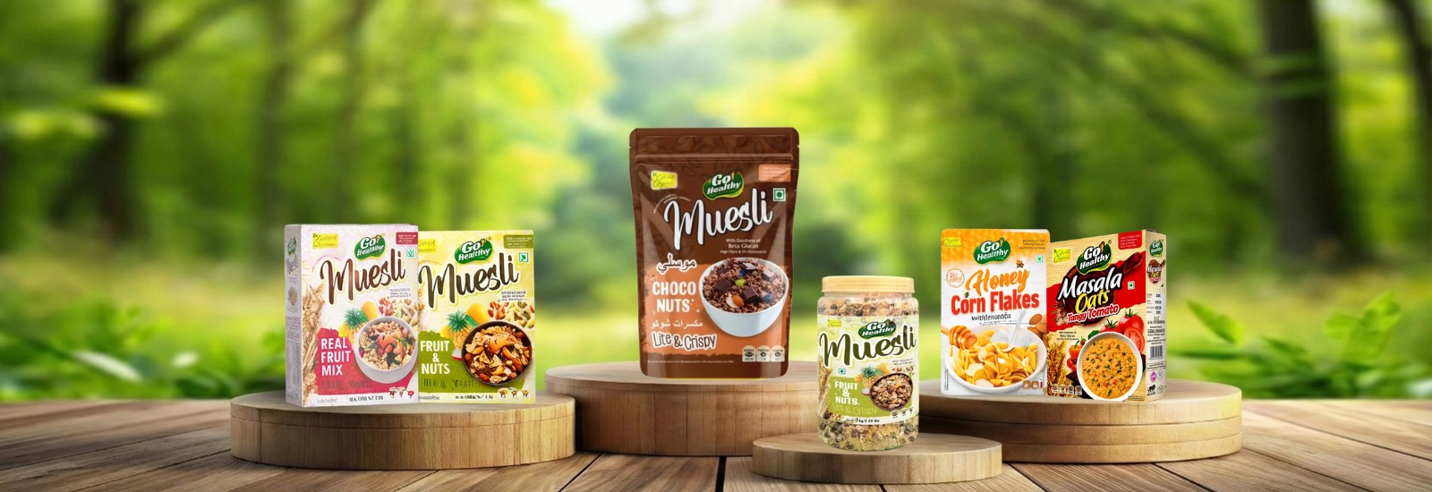At Go Healthy, we offer a range of healthy products, making them your must-haves in a busy lifestyle. Our product categories are for individuals of all ages, from wholesome muesli and healthy oats to Danish cookies and crunchy breakfast cereals. All our categories are crafted to provide an ultimate balance of taste, flavour and nutrition. Our categories apply to all your daily life schedule, whether it’s your morning breakfast, kids’ tiffin or your tea time ritual, making every moment energised and delicious.
